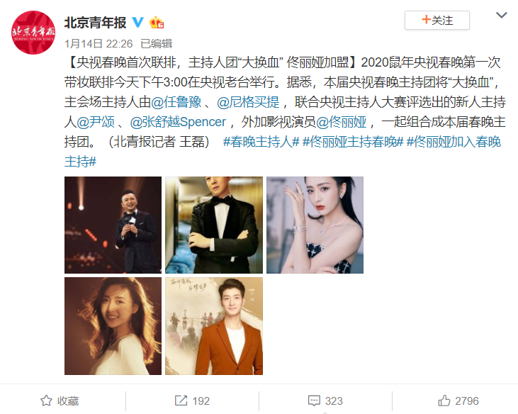 早在前段时间,外界就有消息报道称今年春晚主持人班底启用全新阵容,其中,除了任鲁豫和尼格买提两位央视当家主持之外,也包括了从《主持人大赛》中脱颖而出的尹颂以及张舒越。