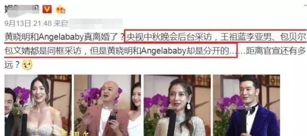 中间他们都参加了央视中秋晚会的录制,但却分开表演不同节目,连后台采访、彩排都是前后脚来,甚至被传出住同一家酒店却订了两间房的传闻,让吃瓜群众疑窦丛生。
