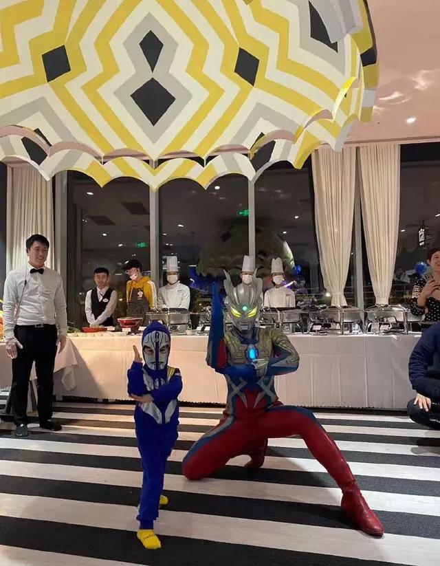小海绵作为派对的主角,自然是盛装出席,他也穿着衣服COS奥特曼,学着旁边的奥特曼在做各种动作,小家伙也是有模有样哦。
