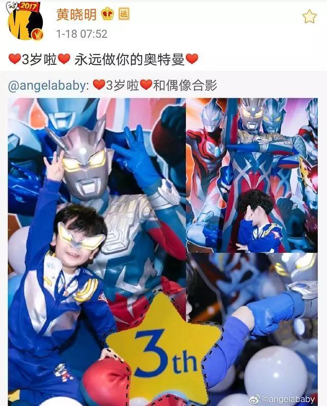 1月18日,网上曝光了小海绵庆生派对的照片,和黄晓明Baby夫妇晒照的一样,这次给小海绵开的是奥特曼主题派对,小海绵在派对上玩得非常开心,不过全程却没有看见黄晓明的身影。