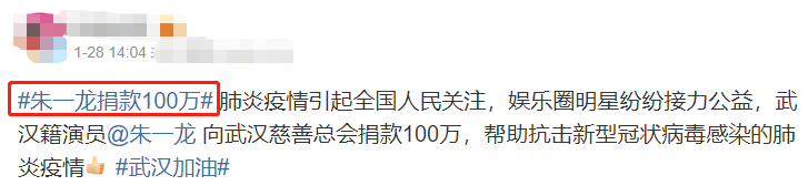 尽管朱一龙离开家乡多年,事业的重心也早就不在湖北,他还是大方地捐出了100万人民币。