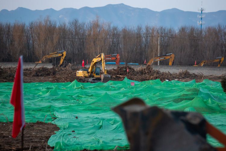 1月29日傍晚,小汤山医院北侧,数台挖掘机在工作。