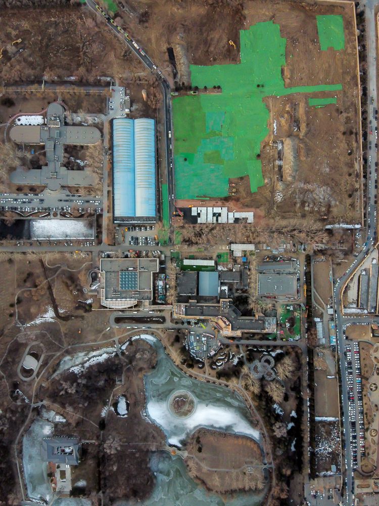 1月29日,小汤山医院(绿色区域)与疗养院B区。(航拍)
