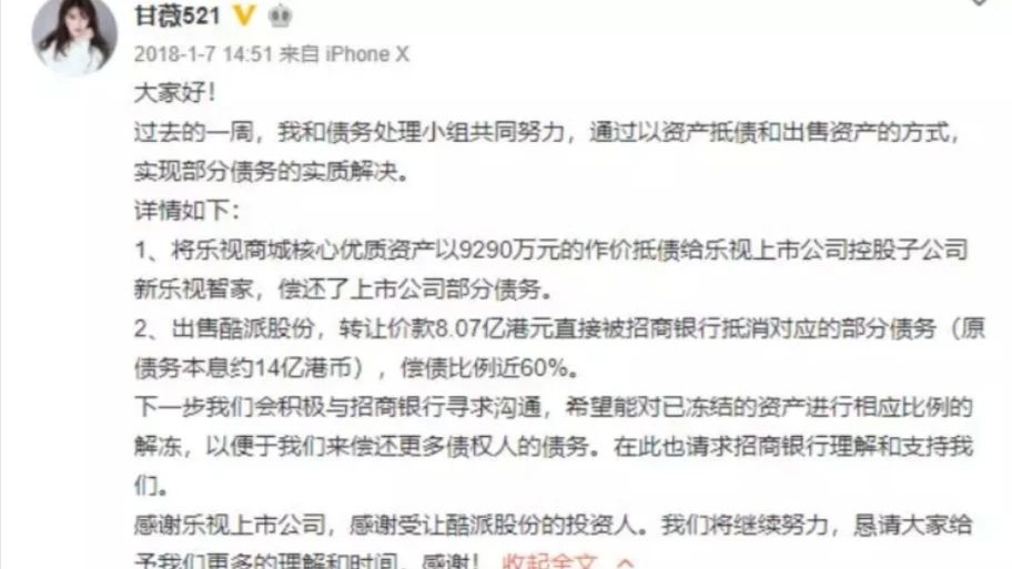 贾跃亭发博回应,随后去了美国,但没有带着甘薇一起。甘薇担起了处理贾跃亭国内债务的大任,“受老贾委托,我将负责贾跃亭在国内的债务问题。”