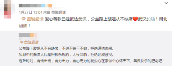 据悉,董璇还为武汉等地捐款10万人民币,她非常低调地在做公益,是一位人美心善的明星。