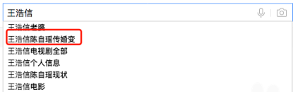 此外,相关搜索软件搜索王浩信一看,其关联的信息也是与陈自瑶婚变,及王浩信个人感情相关。
