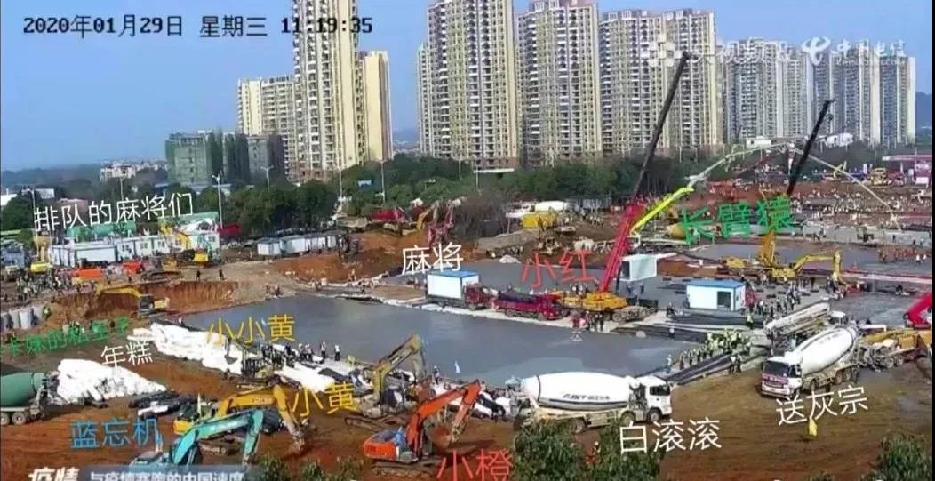 直播评论区刷屏的“小蓝小蓝挖土不难”、“叉酱叉酱劳动榜样”、“小绿小绿超有效率”……这些“应援”口号,更多的是以一种相对轻松的方式,传递人们对疫情的关注、对医院早日建成并投入使用的期待,以及对连夜施工、与疫情赛跑的工人们道一声:辛苦了!