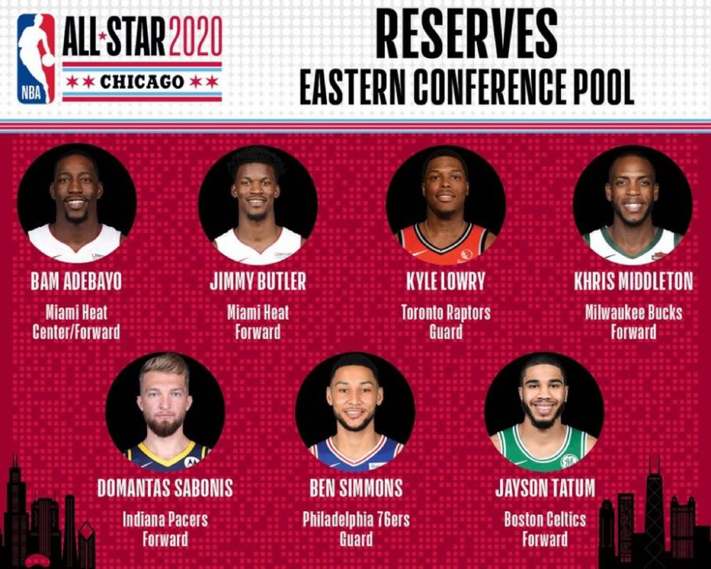 东部替补阵容:阿德巴约(首次)、巴特勒、洛瑞、米德尔顿、小萨博尼斯(首次)、西蒙斯、塔图姆(首次)。