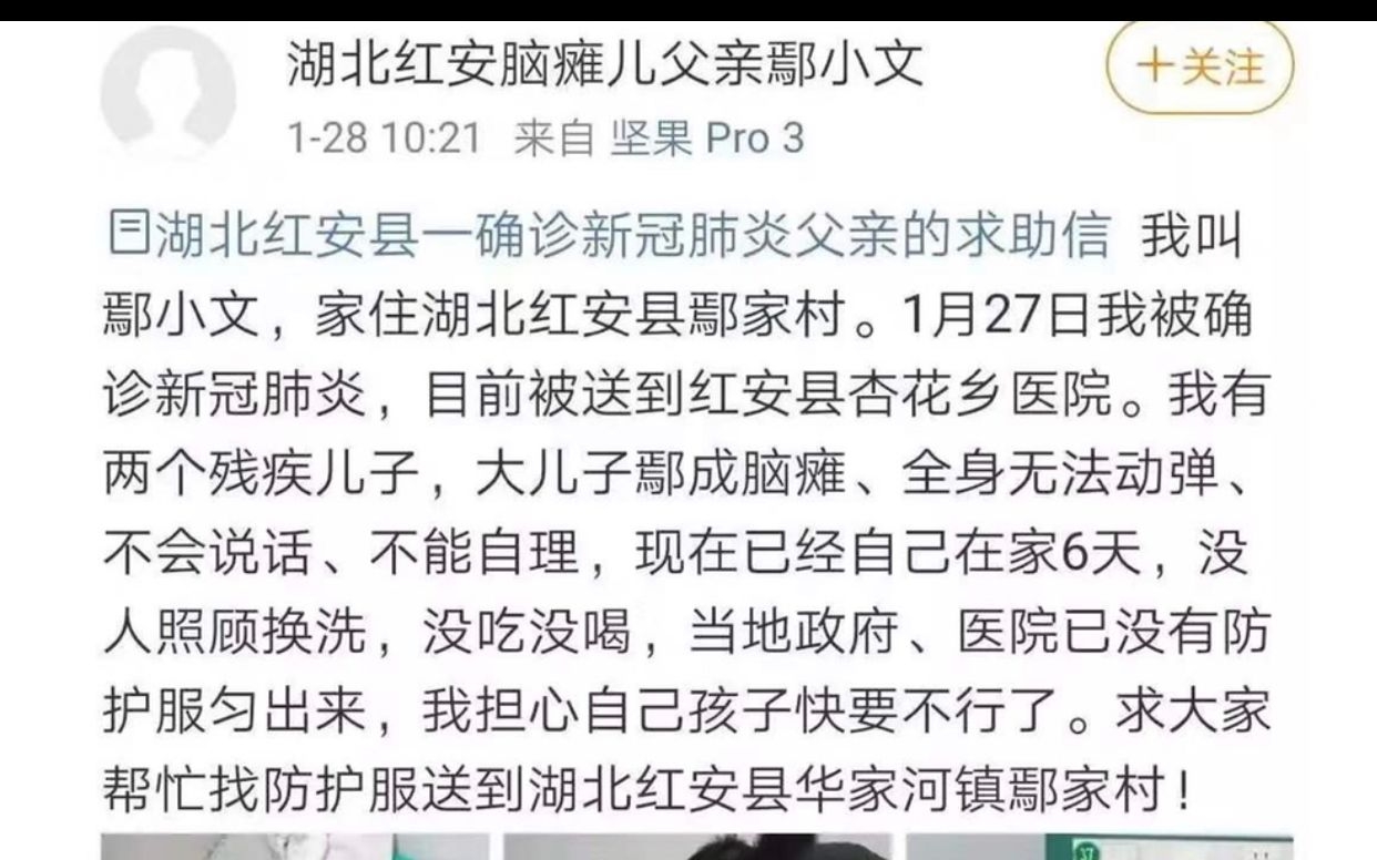 1月29日晚,有消息称,湖北省黄冈市红安县一名17岁的脑瘫儿独自在家6天后死亡,其家人于1月24日因疫情防控被隔离。1月30日9时许,新京报记者从死者的父亲鄢小文处证实了此事。红安县华河镇政府,政府党政办公室主任吴成涛回应称,死亡原因需专家鉴定后才能确认。详情>>>