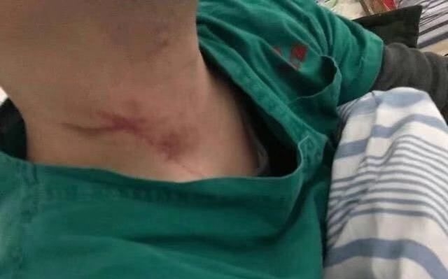 1月29日晚,武汉第四人民医院古田院区的隔离区,一位肺炎患者在无生命体征后,其家属因情绪激动,抓扯并殴打医生头部和颈部,致医生的口罩、防护服被扯坏。
