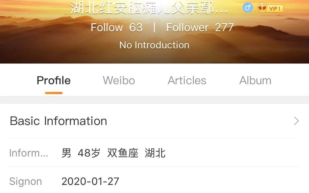 新京报记者查询发现,该条微博内容已被删除,且微博中没有其他发布的内容。微博注册时间为1月27日。