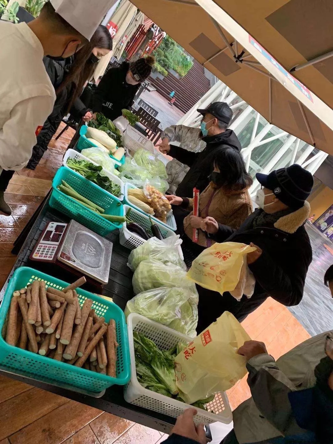 春节假期,本该是餐饮企业的“黄金周”,大餐厅、小饭馆往往生意火爆、一座难求,也是白保更和他的团队最忙的时候。然而,由于受到新冠肺炎疫情影响,今年刚开始大多数餐厅就处于停业关闭状态,旺顺阁鱼头泡饼奥体店也不例外,大年初二就关闭了堂食,只剩下外卖业务,不过订单量也是寥寥无几,储备好的蔬菜和鸡鸭鱼肉也派不上用场了,于是采用露天摆摊儿的方式平价或低价卖给附近的居民。