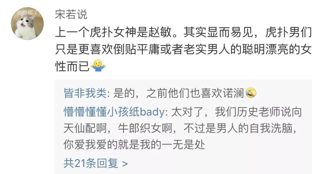 尤其看到演员在直播中颇为豪迈洒脱的形象,与剧中完美的完美女友诸葛大力有很大区别。演员与角色的割裂感动摇了虎扑网友的喜爱,角色与演员不同的常识也被唤醒。