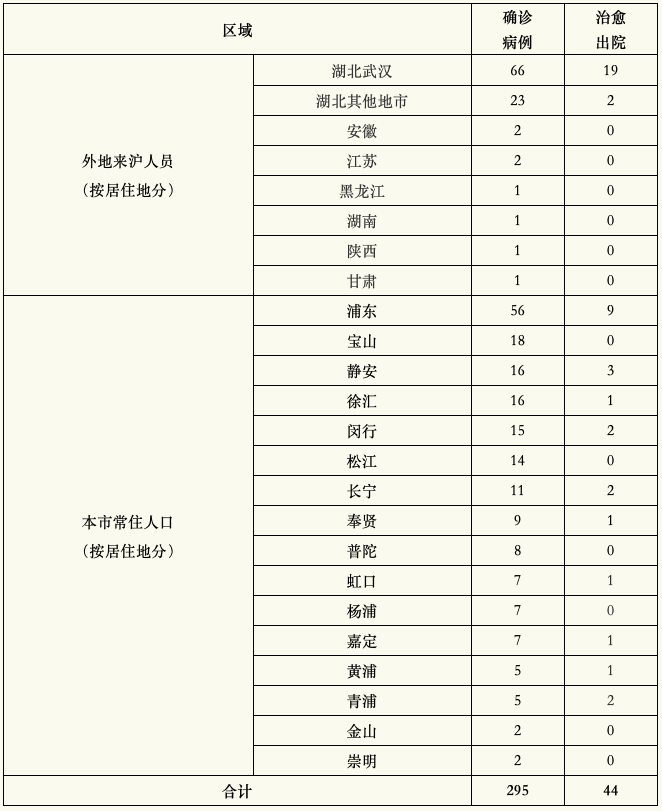 截至2月9日24时,上海市已累计排除疑似病例1062例,发现确诊病例295例。确诊病例中,男性155例,女性140例;年龄最大88岁,最小7月龄;141例有湖北居住或旅行史,24例有湖北以外地区居住或旅行史,127例有相关病例接触史,3例正在流行病学调查中;外地来沪人员97例,本市常住人口198例。具体情况如下: