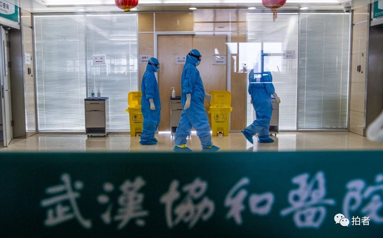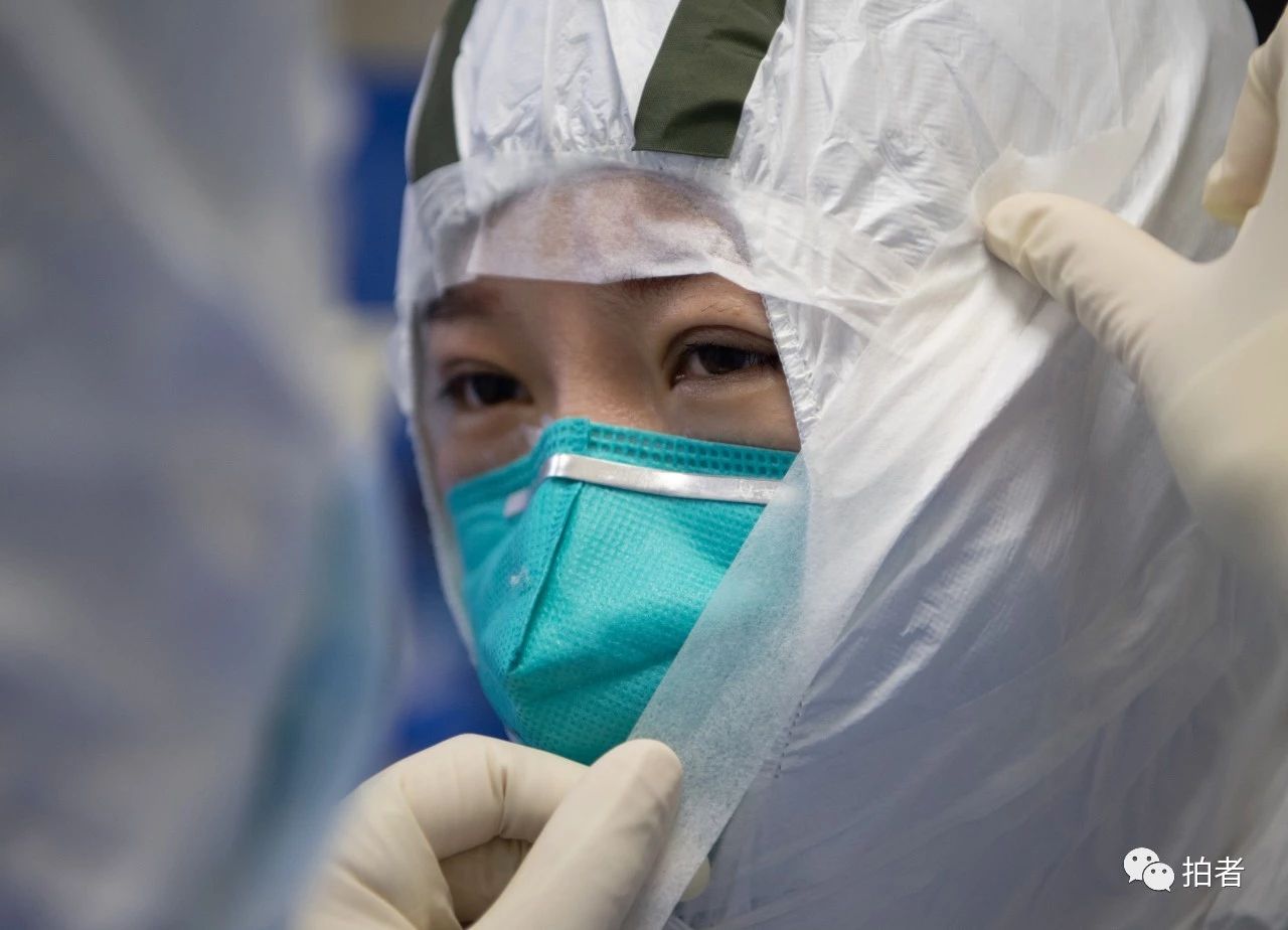 △ 1月31日,武汉协和医院西院区隔离病区,北京市首批援助湖北医疗队员由清洁区走入患者区。