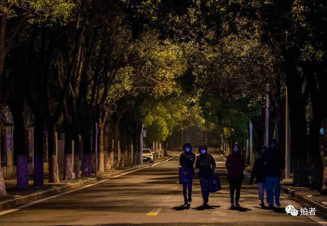 △ 2月6日深夜,武汉协和医院西院区,医疗队员下班后准备乘坐摆渡车返回驻地。