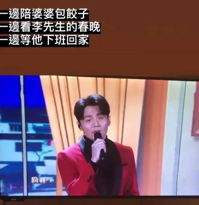 杨丞琳一边陪婆婆包饺子,一边看老公李荣浩的春晚表演,一边等他下班