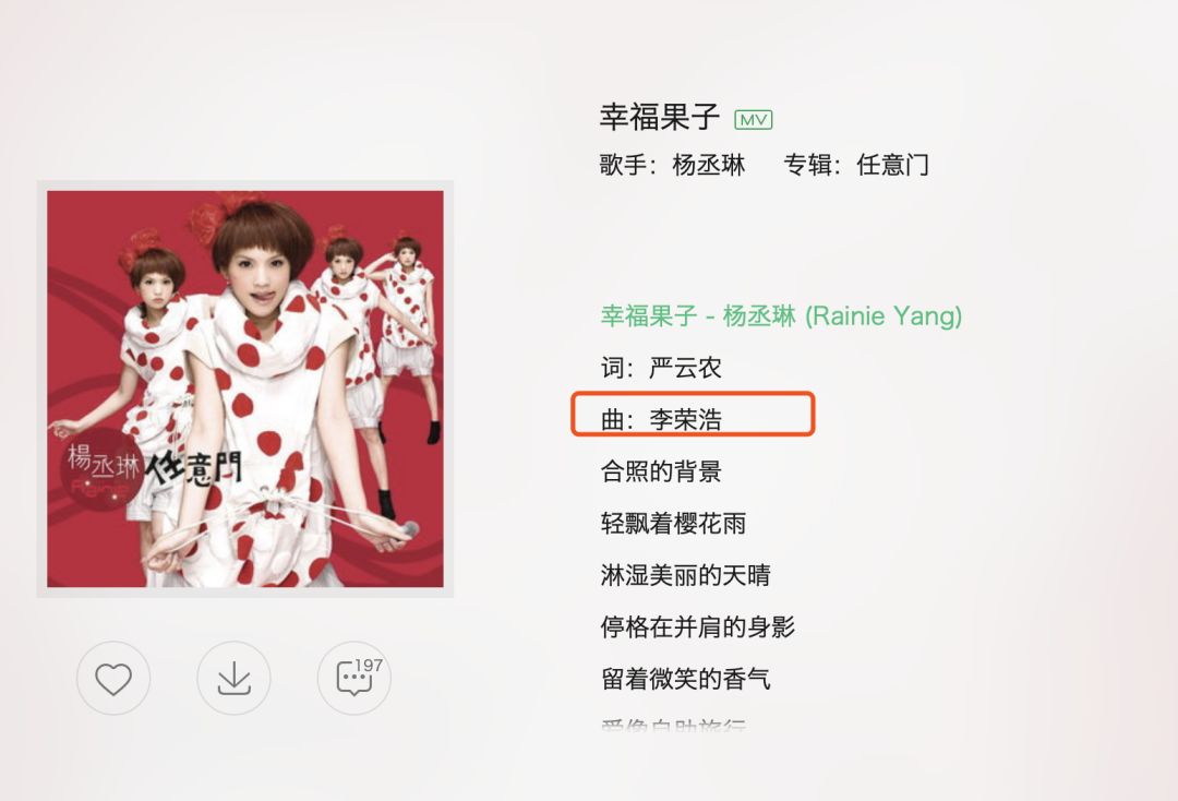 要说杨丞琳和李荣浩这对金童玉女,这两个在大家认知里八竿子打不着的人,07年的时候李荣浩为杨丞琳写过一首歌,叫《幸福果子》,那是他们第一次合作,但两人并不相识,直到2014年,李荣浩出新专辑,主动邀请杨丞琳担任嘉宾