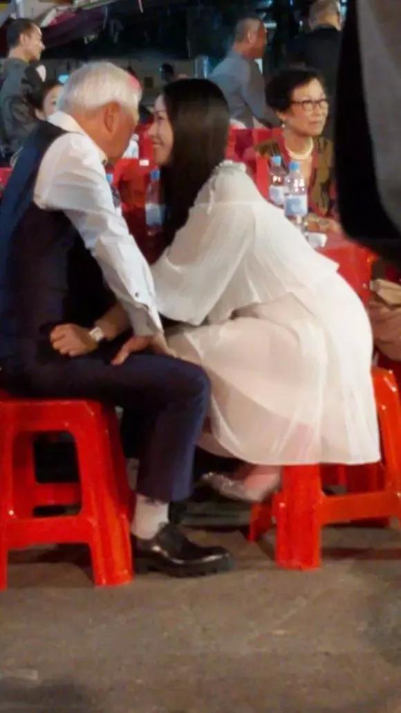 在众目睽睽之下,她一度把双手放到基哥的大腿上,几乎脸贴脸与基哥聊天。