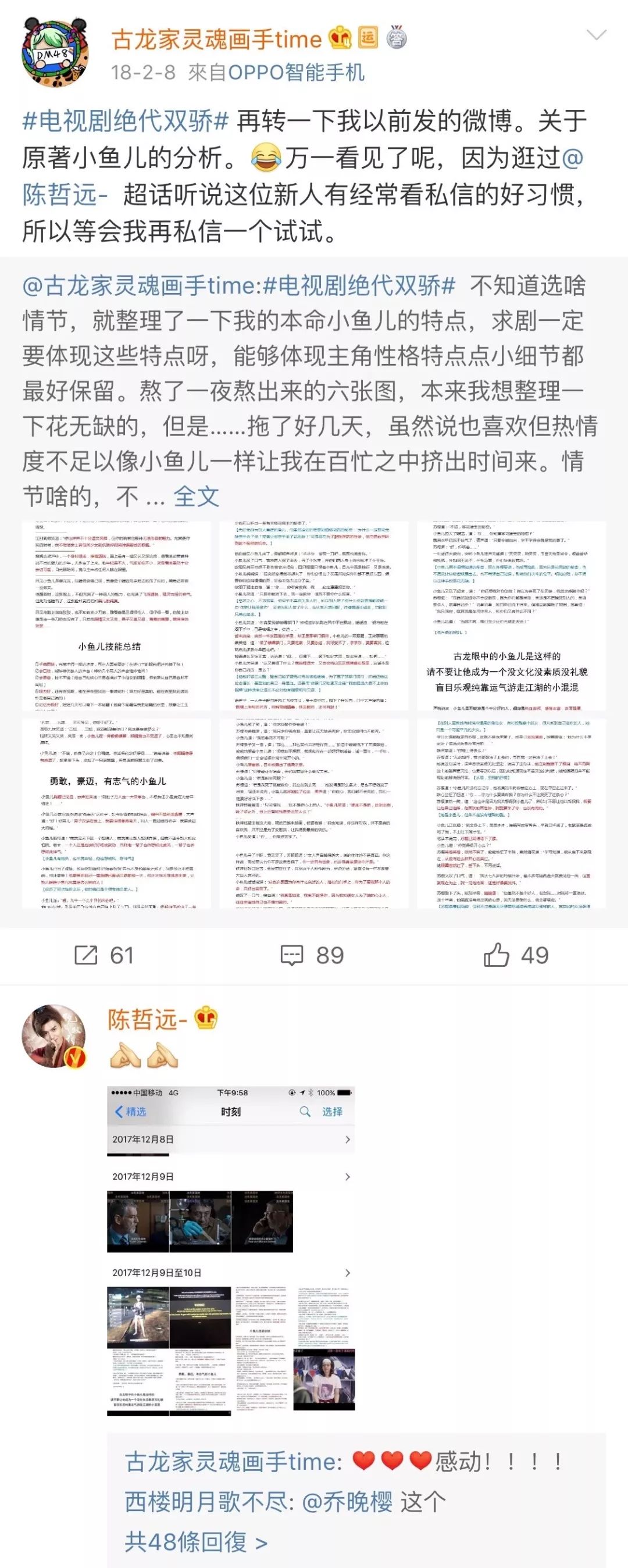 在公布演员名单时,很多书粉看到是位新人演员,非常担心陈哲远能否诠释好这个经典角色,更有古龙迷整理了一份人物小传艾特了陈哲远。认真的陈哲远看到后,不仅收藏了这份资料,在仔细阅读后,还在微博中感谢了这位书粉。