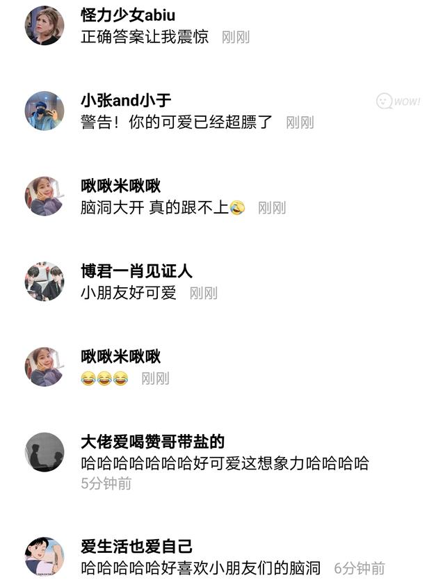 这个答案让网友直呼震惊,脑洞大开的董大福小姐真是让人跟不上,简直就是抽象派大师,小朋友的想象力真的很可爱!