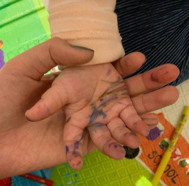 大福似乎很喜欢画画,此前孙怡还晒出过她在自己手上画画,还抱怨自己为什么要给她买画笔。难道此刻孙怡不是自责没有看好孩子吗?