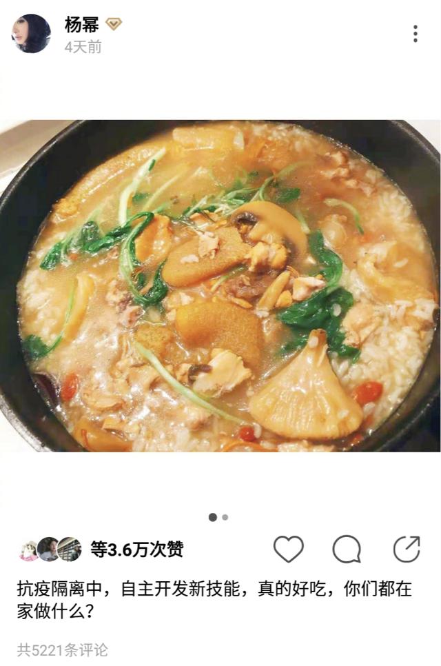 这不前几天便上传了自己get到的新技能,并自卖自夸道,真的好吃。通过照片看上去,那可谓是色香味俱全,杨幂小厨娘附体了。