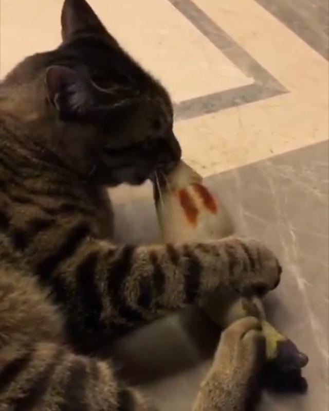 猫吃鱼不变的道理,前几天脾气暴躁的大仓一脸愤愤的抱着鱼在吃。