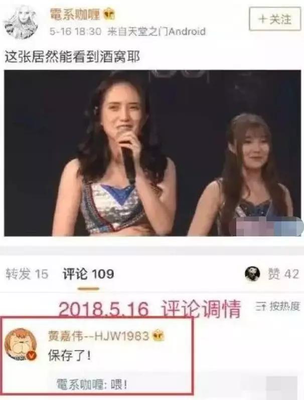 当时黄嘉伟和杜雨微关系暴露之后,网友也扒出不少他在杜雨微微博下的留言,不断称赞其好看,杜雨微也和他有互动。