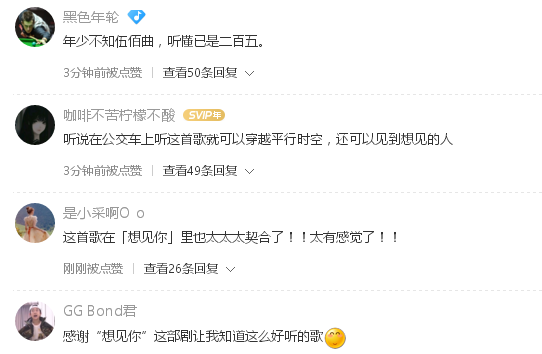 更有趣的是,将近千人听完这首《Last Dance》后,甚至有人自嘲自己是现在才听懂的二百五,歌曲环绕的音律更让人想起《想见你》当中的灵魂穿越,还有人傻傻的认为,是不是听了这首歌,就能见到自己想见的那个人。