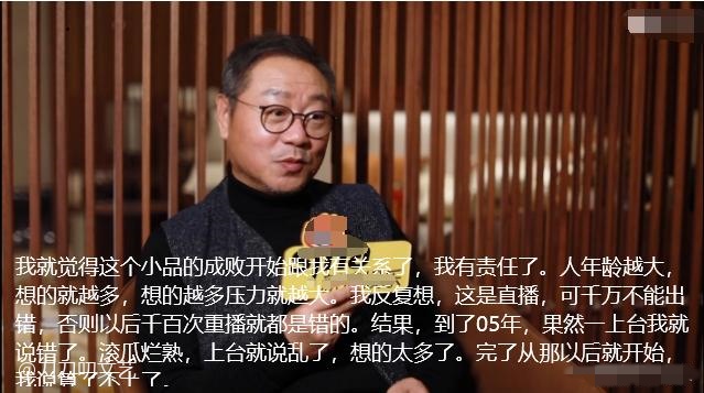 “人年龄越大,想的越多,想的越多压力就越大,到了2005年果然一上台我就说错了,上台前滚瓜烂熟,结果上台就乱说了,从那之后我就说算了,不上了。”