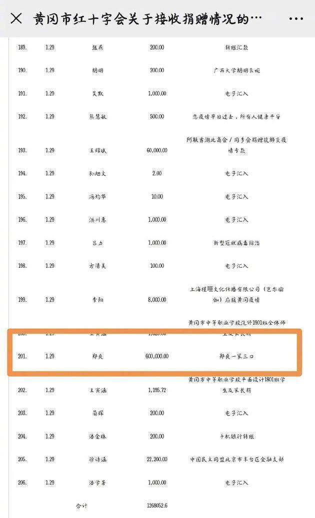 在武汉疫情期间,郑爽一家也积极为湖北捐献了自己的一份力量,为黄冈地区捐出了60万来支持大家共同度过难关。