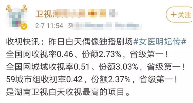 湖南卫视放弃了曾经假期热门的《还珠格格》在线观看(✪ω✪)系列,转头播起了16年刘诗诗主演的《女医明妃传》在线观看(✪ω✪),首播当日成湖南台白天收视最高项目,位列省级第一 !