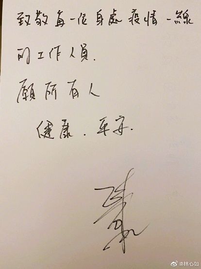 随着疫情的爆发,林心如也只能在家,也晒出自己做的一些饭菜,可见林心如同样受到了疫情的影响。不过,林心如也拍了视频并且和一些明星一样,手写加油为武汉加油,心系武汉战场。