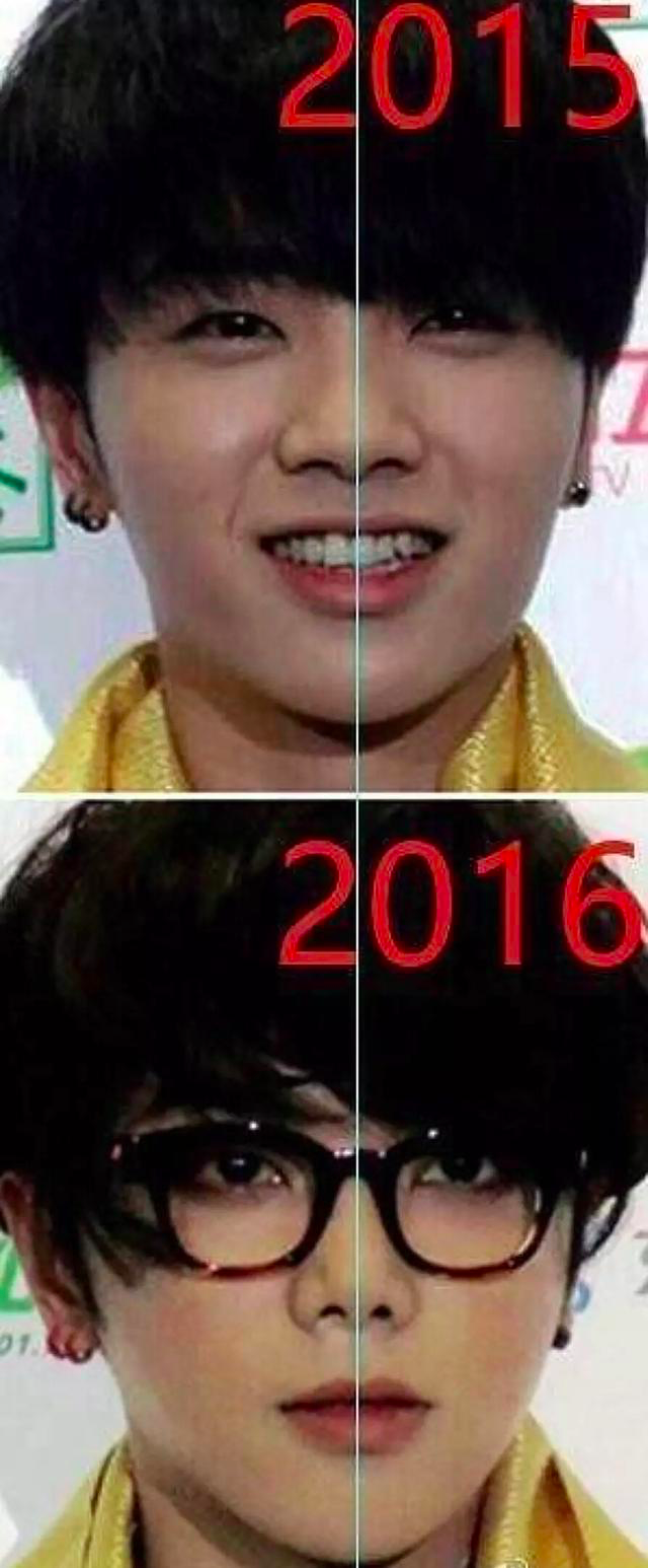 两张照片对比起来,显而易见变化最大的就是脸型。旧照中华晨宇似乎还有着婴儿肥,脸颊肉嘟嘟的非常饱满,戴着黑框眼镜看起来憨态可掬。而近照的脸型变长了,下巴视觉上也尖了不少,并且下颚骨和咬肌的部位也没有了棱角感。除了脸型之外,鼻子的变化也比较明显。早年华晨宇的鼻头和鼻翼都是比较饱满的状态,近照鼻翼明显缩小。