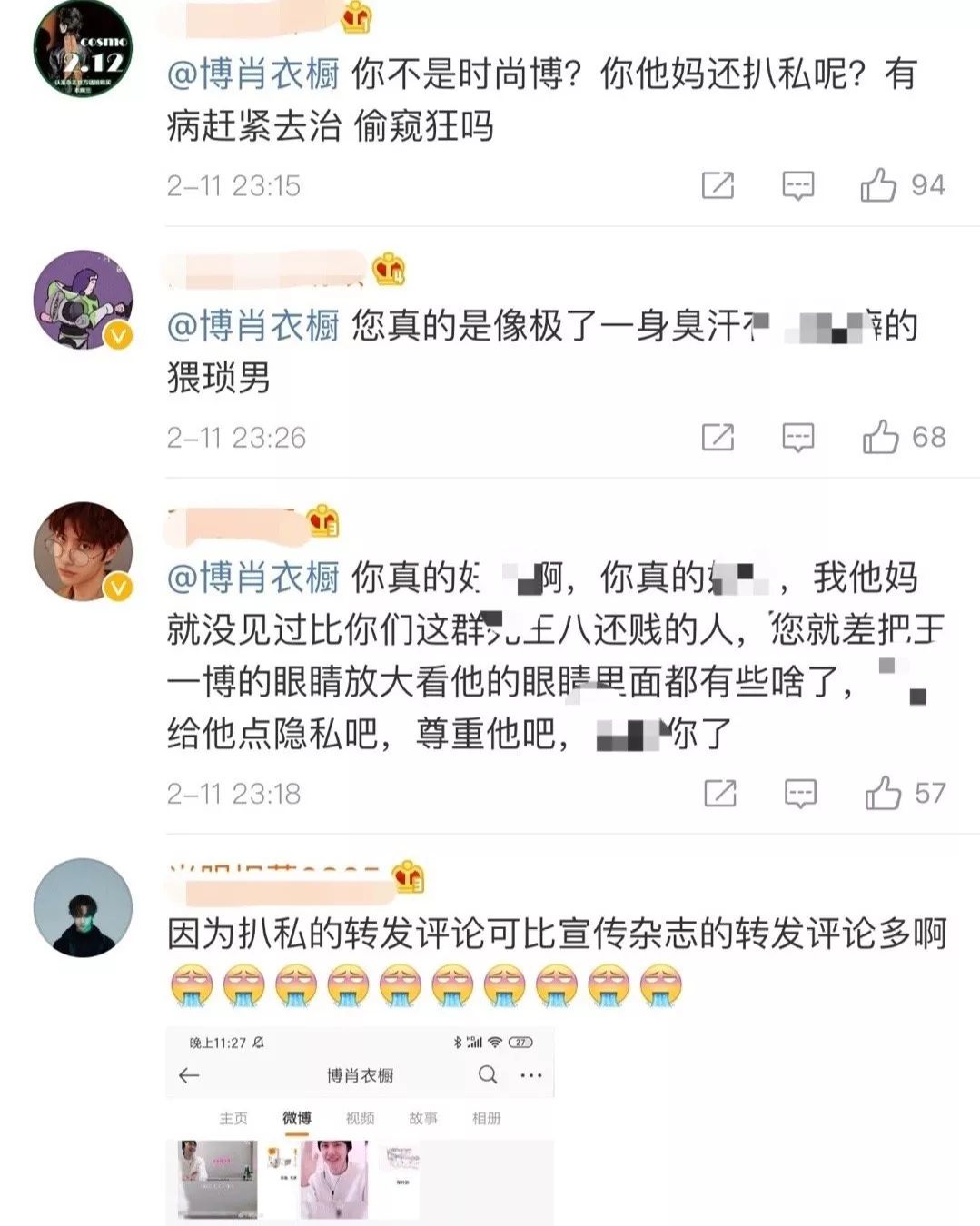 王一博粉丝开骂博肖衣橱,科普一下,博肖衣橱是博君一肖专门为两位男星开的时尚衣着微博。