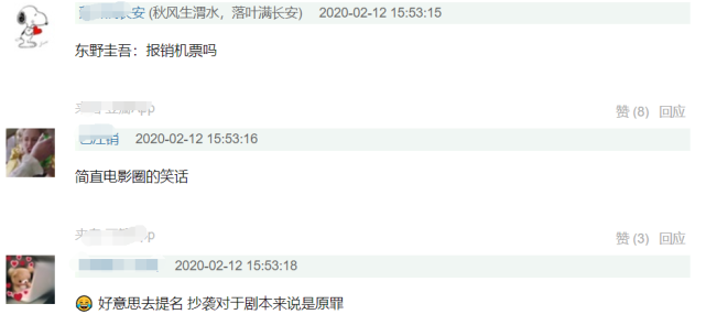 其他网友也纷纷附和留言:“简直是电影圈的笑话,怎么好意思去提名,抄袭对于剧本来说是原罪。”