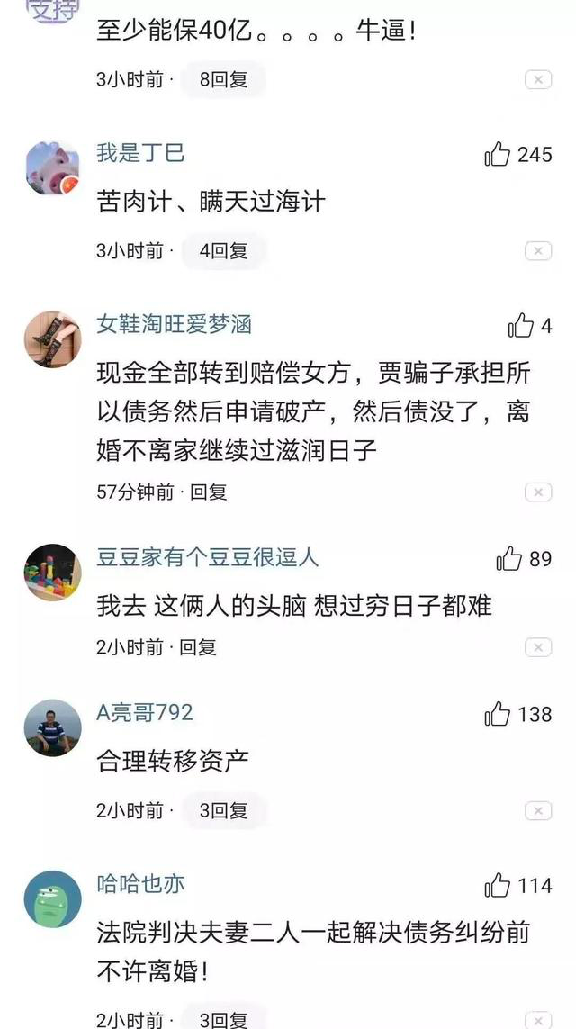 2月12日,有媒体曝出了贾跃亭和甘薇离婚的新进程。据报道称,甘薇向破产的贾跃亭开口索要近40亿的赔偿。如此巨大的金额且不说是一个已经破产商人,即便是对于一个事业轨道正常的富商来说都是一笔天价的数目。早前就有不少网友猜测,甘薇和贾跃亭是为保住财产才出了“假离婚”的下策。如今随着甘薇一反常态地“狮子大开口”,不少网友更是笃定了内心的猜测,认为甘薇是为了帮助贾跃亭转移财产。