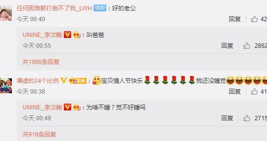 结果评论里的留言和转发数量一下子就暴增了起来,从图中也不难看出,评论3万多,转发32万,有趣的是,在回复网友的评论中,李汶翰居然让粉丝叫自己爸爸