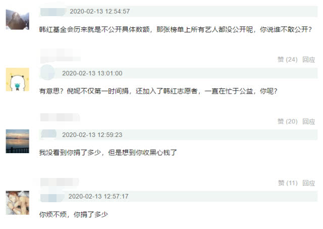言语间可见网友对倪妮的鄙夷不屑,好似倪妮做什么都是错的。很多网友也都看不惯这位杠精网友的言行,纷纷回怼道:“韩红基金会历来就是不公开具体数额,那张榜单上所有艺人都没公开呢,你说谁不敢公开?”“有意思?倪妮不仅第一时间捐,还加入了韩红团队当志愿者,一直在忙于公益,你呢?”可见还是有很多理智的网友。