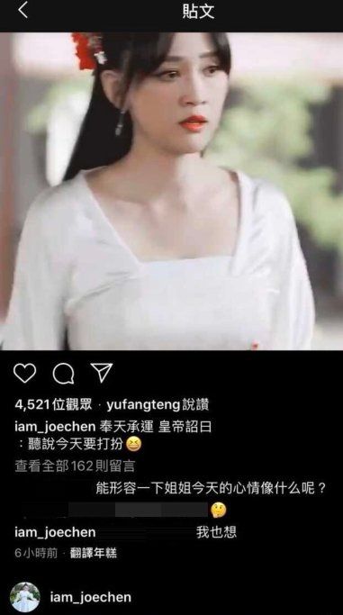 不过,这段戏恰是陈乔恩饰演人物被提亲的画面。对此,也引起了一些人的猜测。其中还有马来西亚的网友称陈乔恩男友艾伦已经求婚了,但随后又删除,说明并不太确定,也可能只是猜测而已。