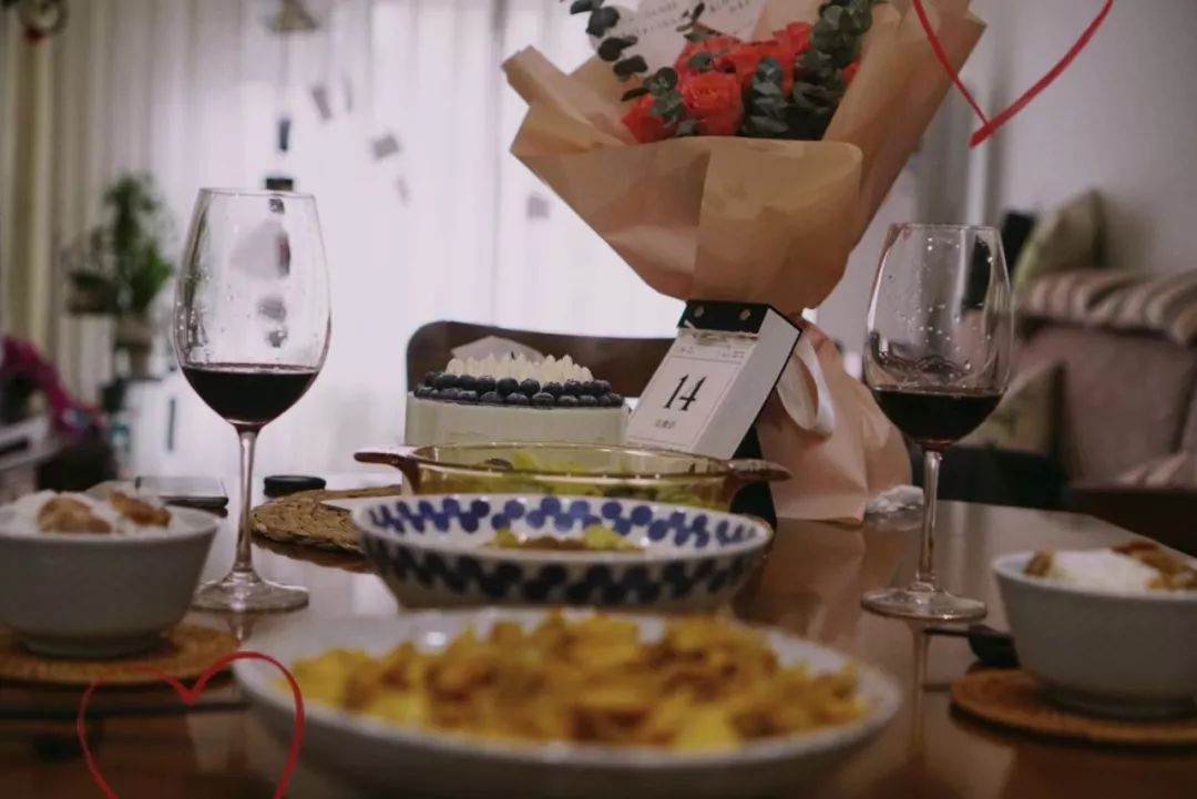 烛光晚餐、艳丽的玫瑰、还有情人节礼物。
