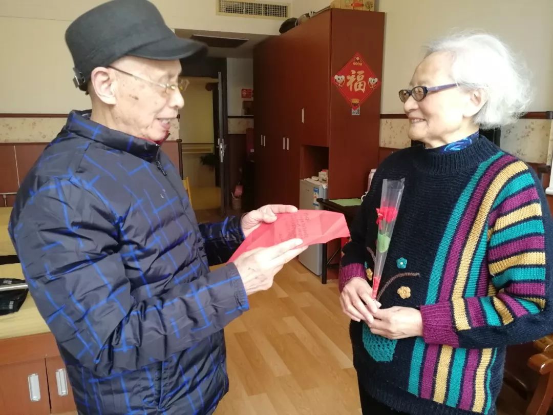 去年情人节,在老年公寓工作人员的“怂恿”下,徐介南给老伴送了一枝花。
