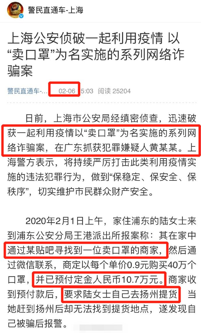 其实黄智博被捕的时候并并没有引起关注,2月6日的报道只是称警方破获一起利用疫情,以“卖口罩”为名实施的系列网络诈骗,在广东抓获犯罪嫌疑人黄某某。