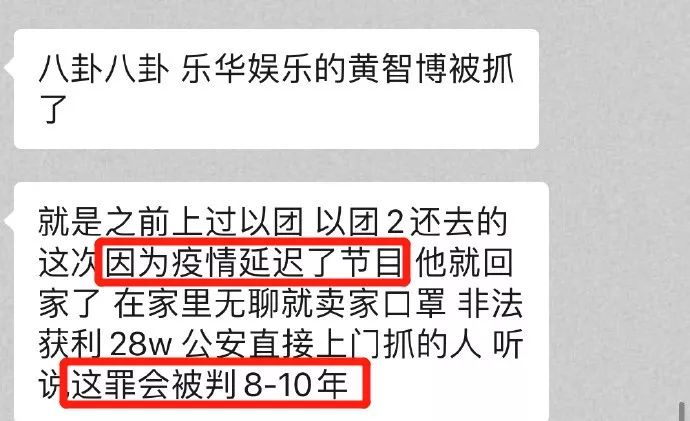昨晚,饭圈粉丝经过重重比对各种图片后确认了黄智博被抓,这个新闻迅速成了热门话题,而乐华娱乐方面也才获悉了有旗下艺人卖口罩骗钱, 公司紧急发布了解约声明。
