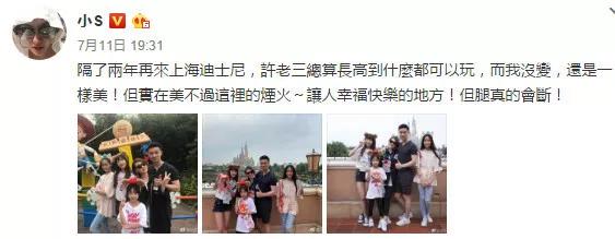 这些年小S处理老公绯闻的能力是越来越轻车熟路了,不仅辟谣,第二天还在微博上发全家一起去迪士尼游玩的合照,心情似乎没有受什么影响。