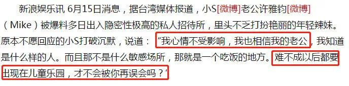但小S还是选择相信,并且开怼媒体:“难不成以后都要出现在儿童场所,才不会被你误会吗?”