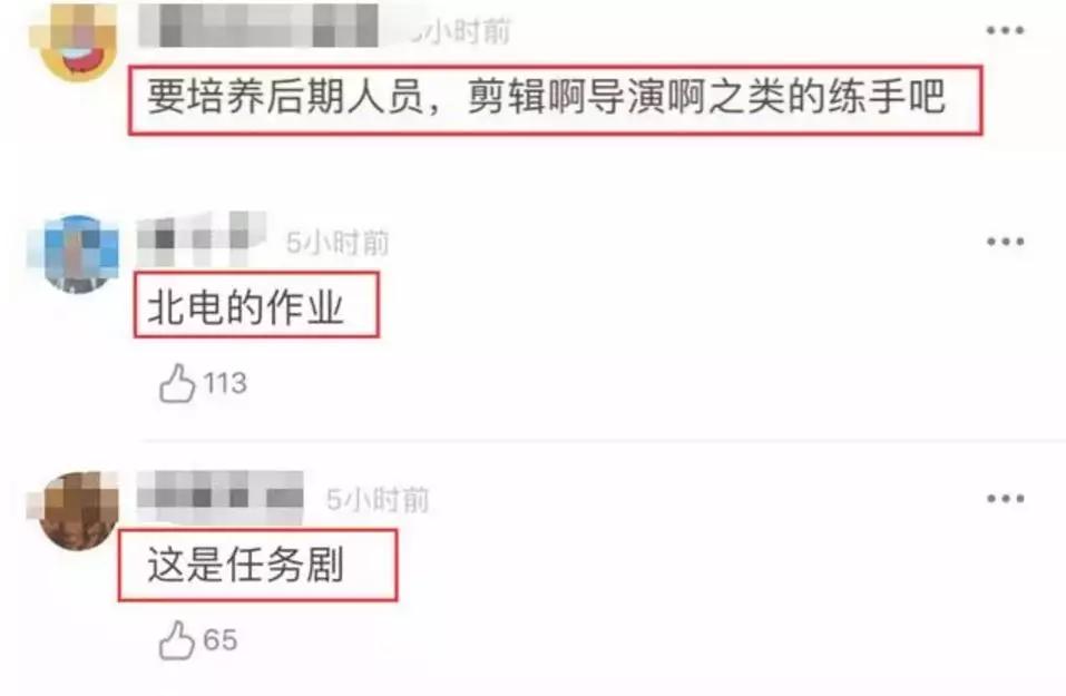 总而言之,在刷过几集之后南风真的是一个头两个大。但在失望之时,却发现有网友说这部剧是“北电作业剧”。