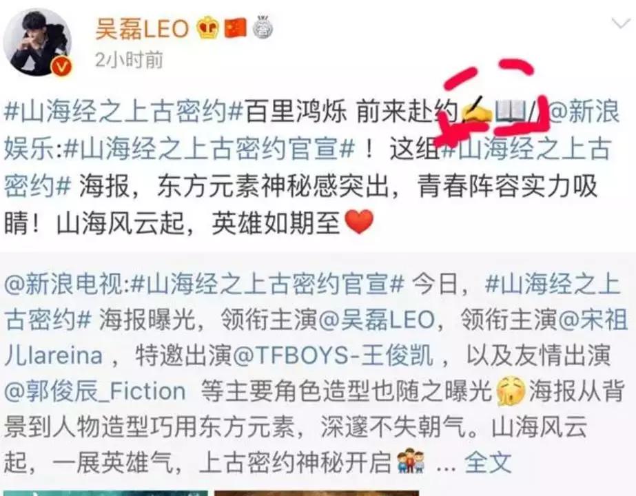 甚至《上古密约》海报首发的时候,吴磊也在转发微博里表示:我这是在做作业。
