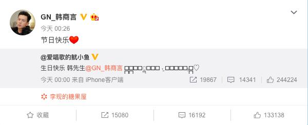 佟年祝韩商言生日快乐,韩商言祝佟年节日快乐。又是生日,又是情人节,这狗粮让粉丝大呼满意!